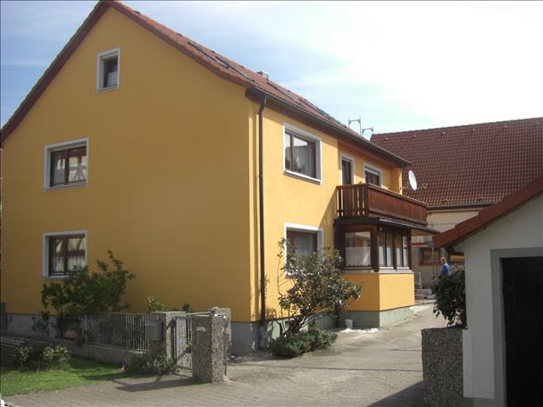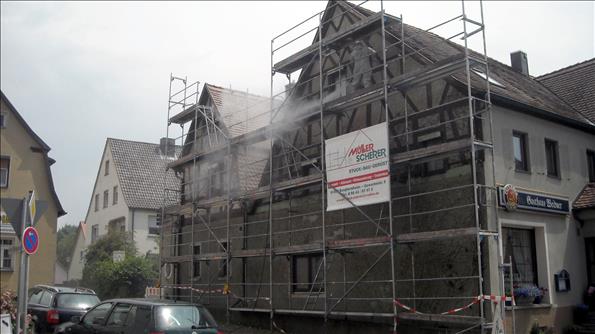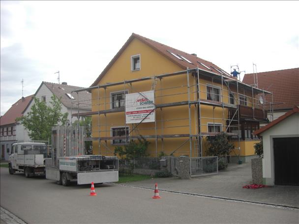 Fassadenrenovierung mit Gewebespachtel - Oberputz - Fassadenanstrich mit Siliconharzfarbe mit Nano.Quarz-Partikeln für eine saubere Fassade