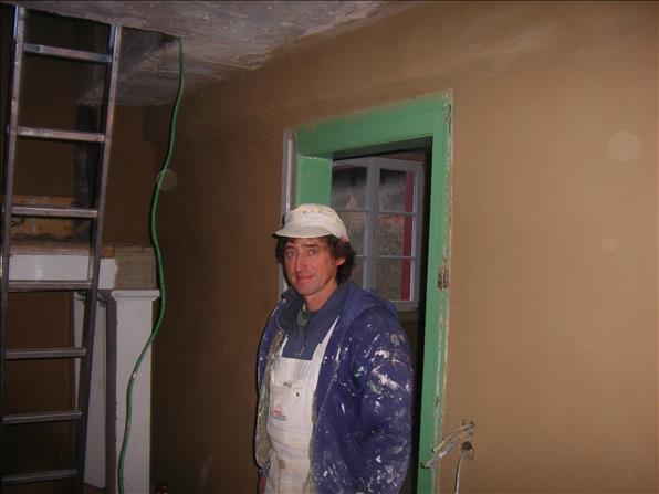 Außenwand mit 5 cm Strohmatten verkleiden Lehmgrundputz -Judegewebe - Lehmoberputz